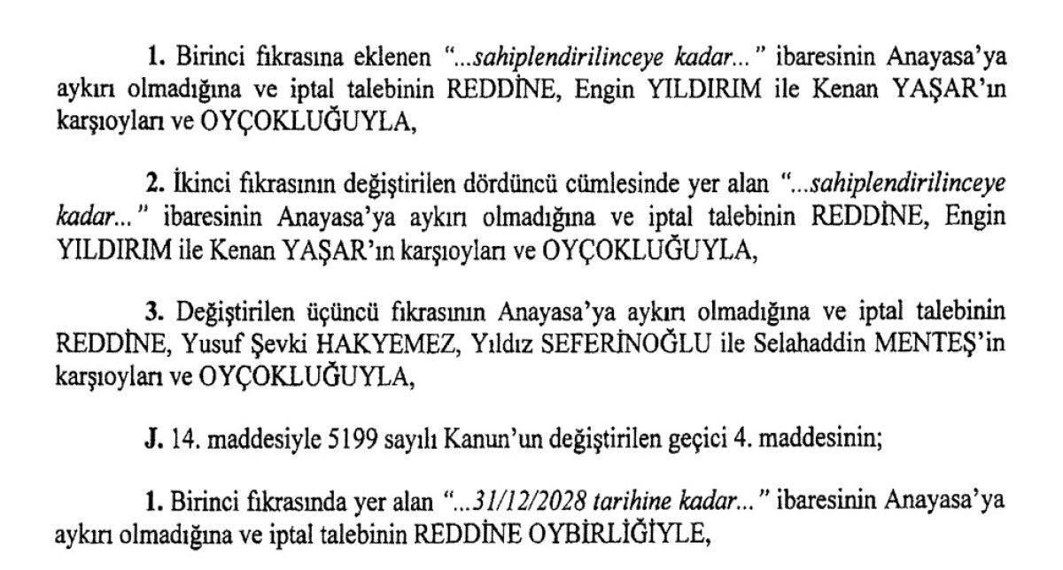 Mahkeme birçok madde için iptal başvurusu yapan CHP’nin taleplerinin çoğunu oy birliği ile reddetti.
